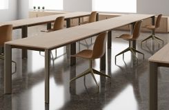 With innovative design and thoughtful engineering, CREW pairs the familiar form of a classic table with the ease of flip-top mobility. Experience an elegant mobile solution where every seat at the table affords maximum comfort. CREW’s innovative mobile flip-top design places legs at the far corners of the table, ensuring unconstrained legroom for everyone, regardless of your configuration. Power and data are smartly integrated into the table edge, seamlessly and conveniently meeting your technology needs.