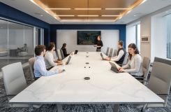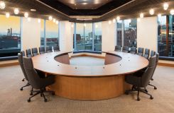 72 x 216 Custom Halo conference table with 2cm stone surface and Mesa loop base.