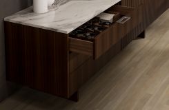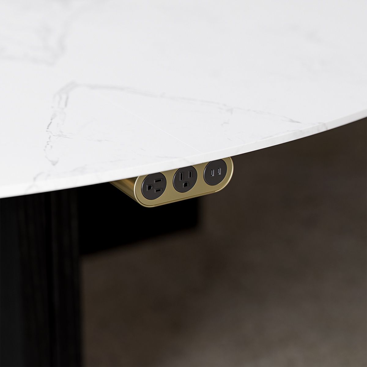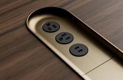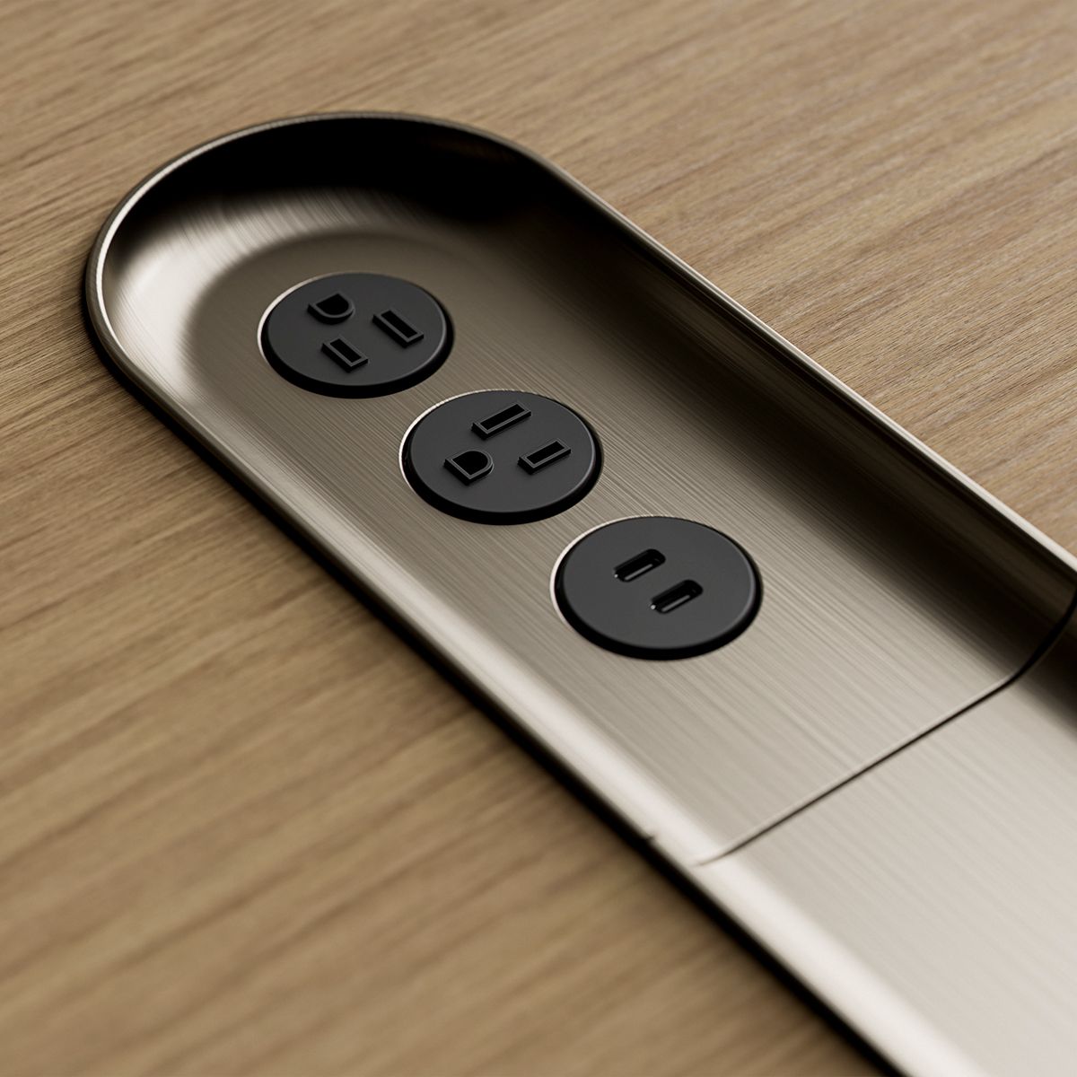 FREYA’s range of power basins and perimeter power bays place connectivity at your fingertips and are available in a range of luxurious brushed metal finishes.