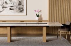 FREYA tables and storage land perfectly at the intersection of the sophisticated comforts of the modern home, and the functional and collaborative necessities of the modern workspace. With elegant, Scandinavian-inspired lines, FREYA brings a luxurious sense of purpose to meeting spaces of any size. FREYA is designed for total functionality and superior aesthetics to create texture, richness, and depth in the interior space.