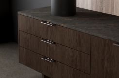 |FENIX NTM is an innovative material utilizing nanotechnology and advanced acrylic resins. With low light reflectivity, its surface is anti-fingerprint with a very pleasant soft touch. This durable finish is available on composite resin table tops. Please contact HALCON for additional FENIX NTM finishes.