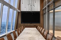 60x192" Halo table is the elegant centerpiece of this conference space.