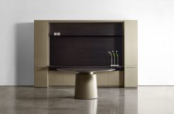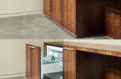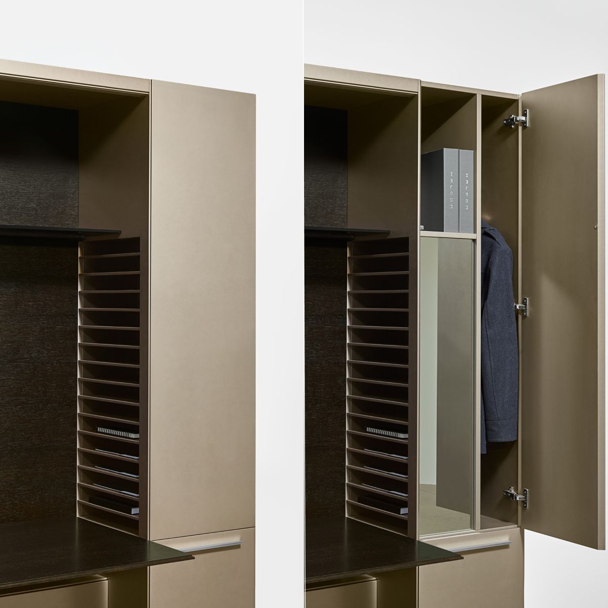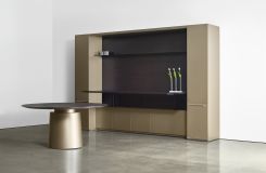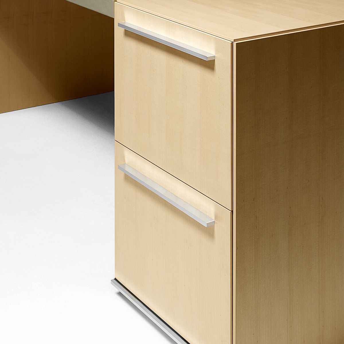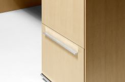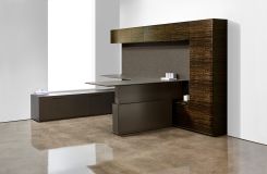 Mitre is anchored by a minimalist workwall that features the application of unique and sophisticated materials. Mitre pedestals and cabinets are available with an optional base accent to complement the lines and proportion of the finger pull. Companion pieces- desks, guest seating, lounge seating, offer various detail options that complement the workwall and complete the environment. Mitre possess a timeless quality where simplicity, proportion, attention-to-detail, and elegance in execution ensure the longevity of the design statement.