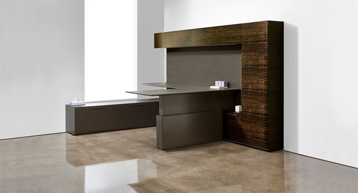 |Premium veneers are sequence-matched and balanced by skilled artisans one-office-at-a-time for the best, most beautiful veneer match possible. Our durable, Clean Air GOLD certified polyurethane finishes are formulated for clarity and depth to enhance the natural beauty of wood.