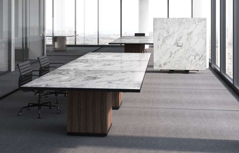 Adaptable mobile tables provide flexibility with executive-level sophistication.