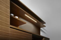 Clean lines and integral wood finger pulls highlight a modern, timeless design.