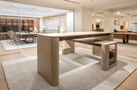An expansive collection of tables and storage designed to harmonize beautiful aesthetics with technical excellence.