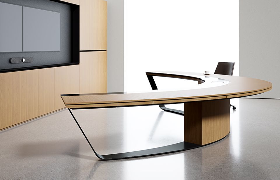 A custom HALO / OPTIC conference table is the centerpiece for this executive meeting space.