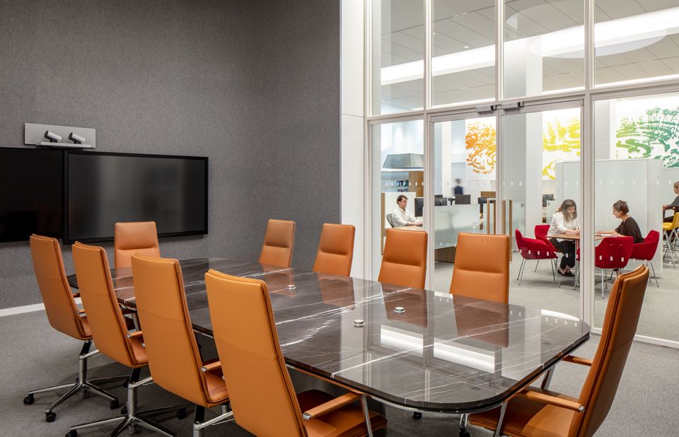 Exquisite conference spaces are anchored by elegant HALO tables.