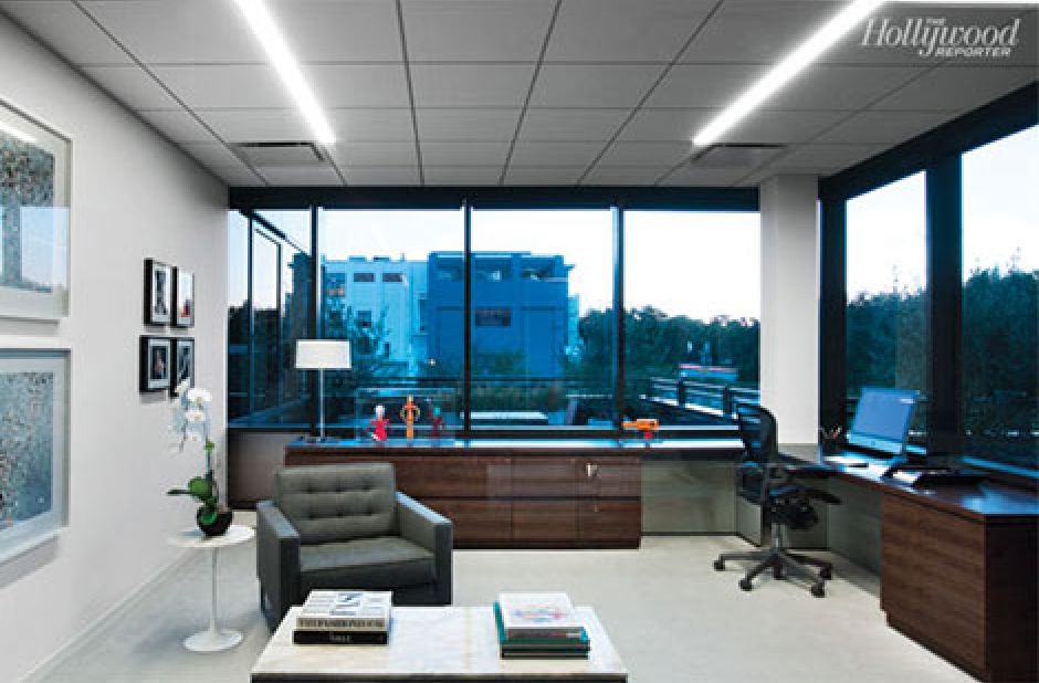United Talent Agency's private offices feature sleek MILLENNIA desking in Quarter Cut Limba veneer.